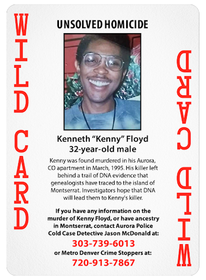 If you have any information on the murder of Kenny Floyd, please contact Aurora Police Department Cold Case Detective Jason McDonald at 303-739-6013 or jamcdona@auroragov.org. You can also submit an anonymous tip to the Metro Denver Crime Stoppers by calling 720-913-7867.