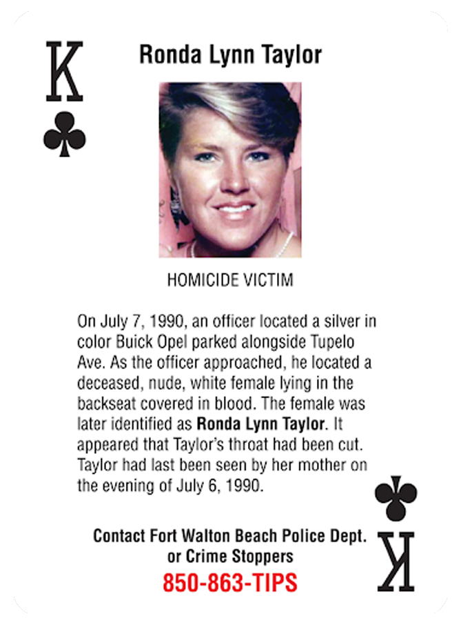 If you know anything about the murders of Ronda Taylor or Bonnie Ryther in Florida’s Gulf Coast, you can contact Detective Wilson directly at 850-797-2458. You can also call the Emerald Coast Crime Stoppers at 850-863-TIPS.