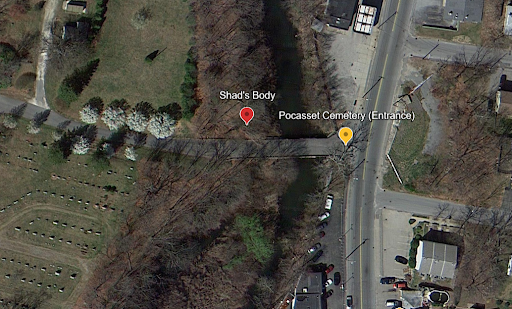 An aerial view of Pocasset Cemetery taken in 2012; Courtesy of Google Earth