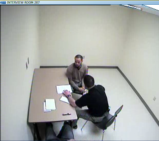 Ruben talking to Cranston Detective John Cardone on March 24, 2013; Courtesy of Cranston Police Department (Screenshot of video by Audiochuck Staff)
