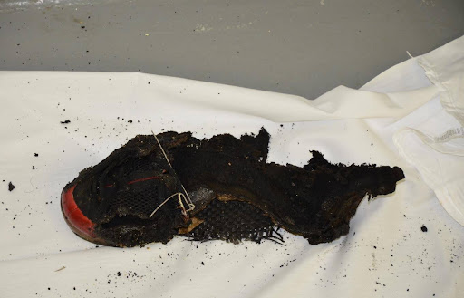 Shad’s burned shoe; Courtesy of Cranston Police Department