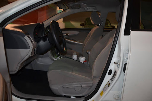 The interior of the white 2012 Toyota Corolla rented by Ruben, photographed while being processed by police on March 24, 2013; Courtesy of Cranston Police Department